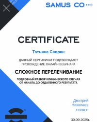 - Сертификат «Подробный разбор клинического случая от начала до отдалённого результата», 2025 г.